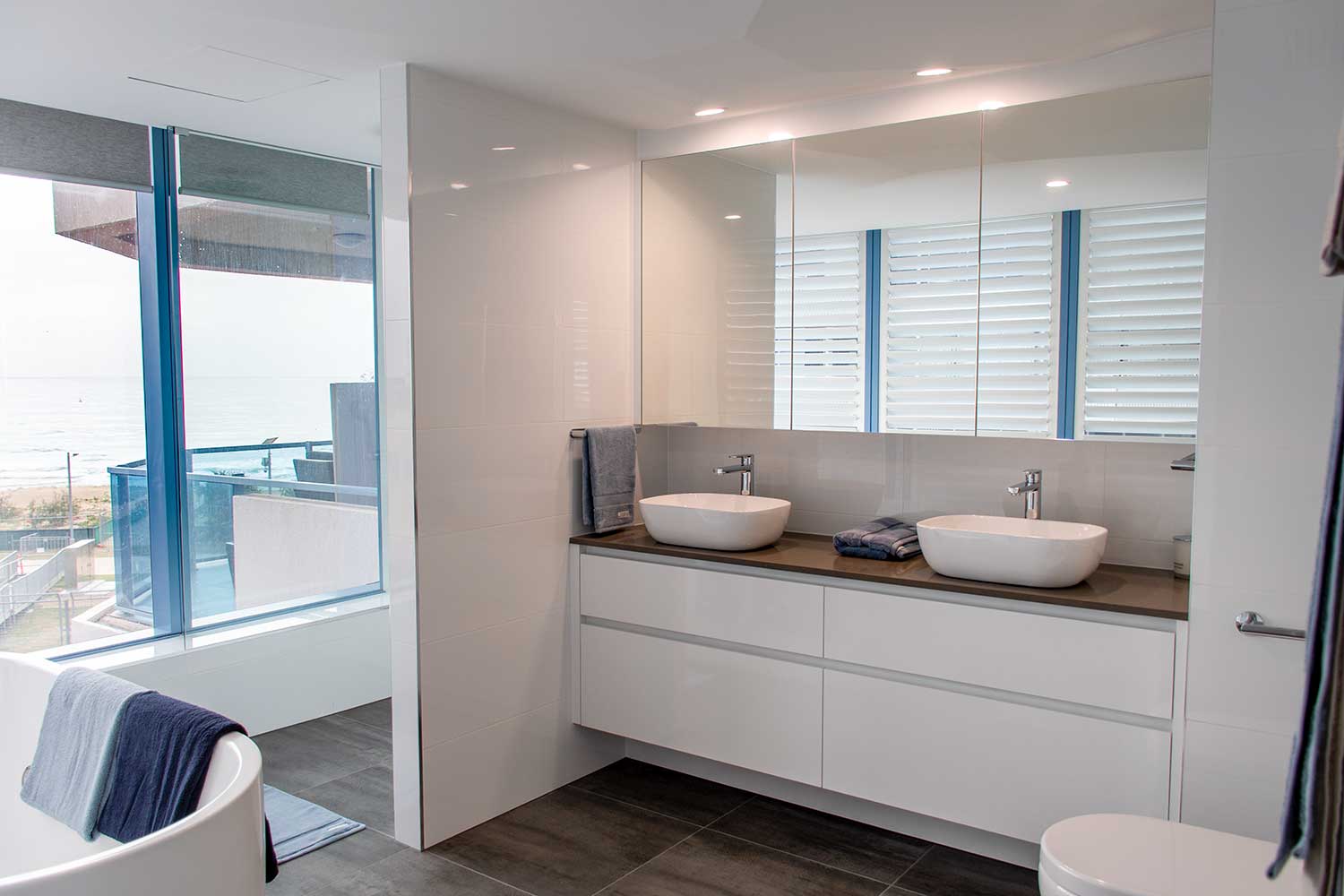 This project was a full renovation. We oversaw construction through to a full decoration & styling package. It all came together very well for a polished beach-home feel.